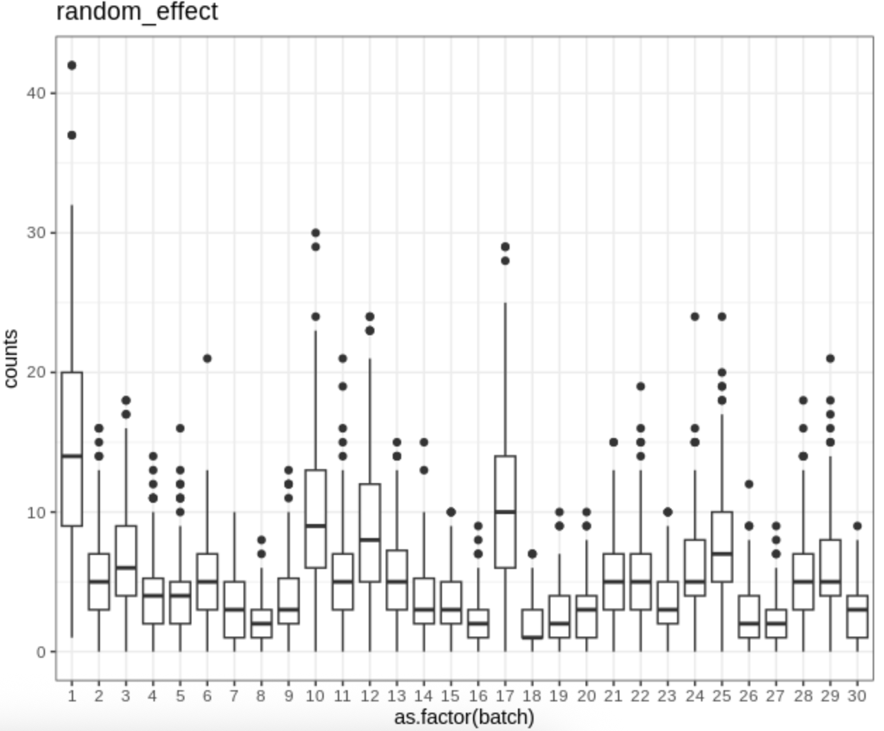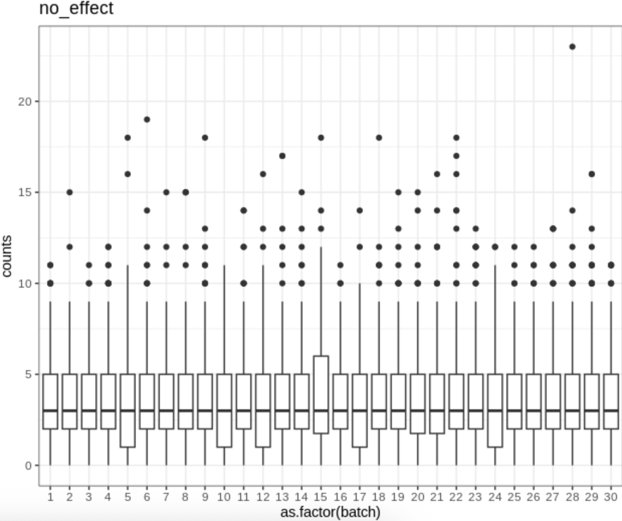 3. Still based on the same gene correlation structure described above, we generated another type of count matrix. In this setting, a subset of genes was correlated with the batch variable, meaning that the batch effects on the same gene expression differed across batches. Statistically, this was implemented by simulating a random intercept for batch effects.